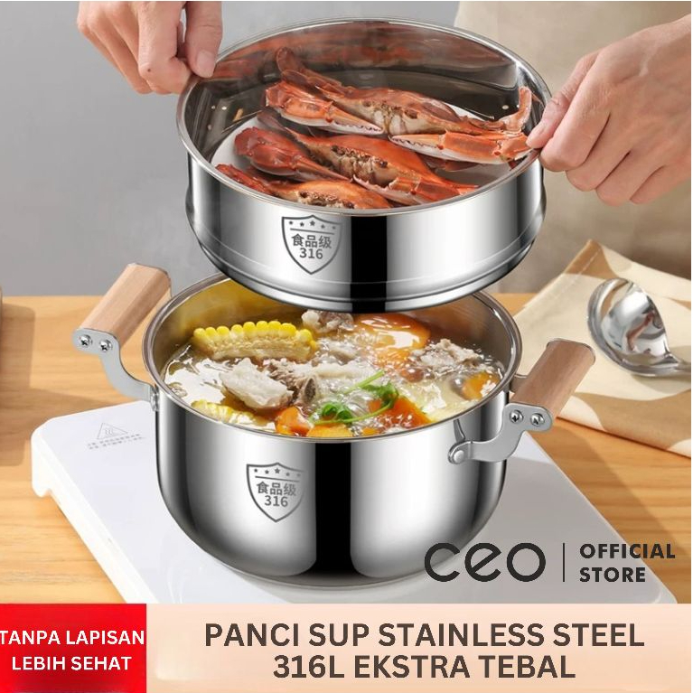 CEO Panci Set dibuat dari bahan stainless steel berkualitas tinggi. Artinya, panci ini kuat banget, tahan lama, dan nggak gampang karat. Kamu nggak perlu khawatir lagi soal panci yang penyok, bocor, atau bahkan berkarat setelah dipakai beberapa bulan. Investasi jangka panjang yang bener-bener worth it!