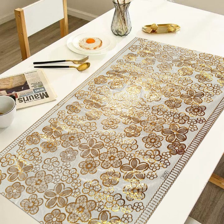 Bayangin deh, ruang tamu kamu yang tadinya biasa aja, langsung berubah jadi kayak ruang tamu di hotel bintang lima cuma gara-gara satu taplak meja. Warna gold-nya itu lho, bukan gold yang norak ya, tapi gold yang subtle, mewah, dan bikin kesan elegan. Dijamin, tamu-tamu yang dateng bakal langsung terpesona!